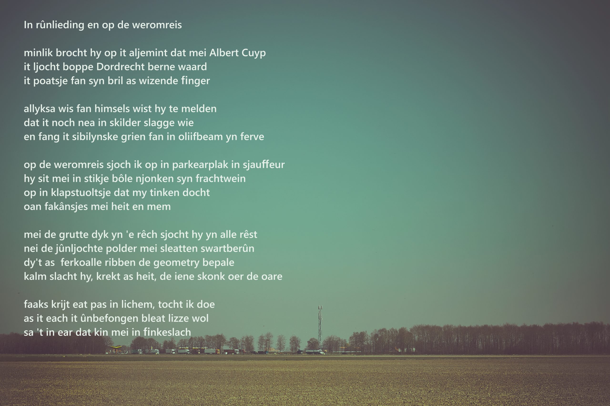 J. J. Slauerhoff (1898-1923), geboren in Leeuwarden, was een van de belangrijkste Nederlandse dichters en romanschrijvers tussen de Eerste en de Tweede Wereldoorlog (het interbellum). Vanaf 1921 begon Slauerhoff zijn eerste gedichten te publiceren in een literaire tijdschrift en zijn debuut volgde twee jaar later. Hij laat een schat aan werk na, waaronder tien dichtbundels. Slauerhoff was bij uitstek een romantisch dichter, zijn gedichten getuigen van rusteloosheid, onvrede met het bestaan, heimwee naar het onbereikbare en een sterke identificering met verschoppelingen, met mensen die tegen de maatschappelijke stroom inzwemmen.