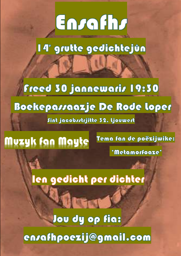 Op dizze lêste tongersdeis fan de moanne kinne skriuwers en dichters inoar moetsje by it Skriuwerskafee, yn Kafee De Gouden Leeuw. Tusken 19.00 en 21.30 uur is der tiid om by te praten, wurk te dielen en literêre plannen te meitsjen. Nim ‘pinnefruchten’ en ideeën mei foar in ynspirearjende jûn. Oant gau!